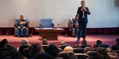 En la mesa del presídium acompañaron al diputado Luis Alfonso Silva Romo representantes de la Universidad Autónoma Benito Juárez de Oaxaca, el licenciado Porfirio Hernández Hernández, director general de bibliotecas y el licenciado Abelardo Salvador Sánchez Ramírez, coordinador de responsabilidad social, quienes en su participación agradecieron la apertura del diputado Luis Alfonso Silva Romo para compartir su experiencia con la juventud estudiantil.