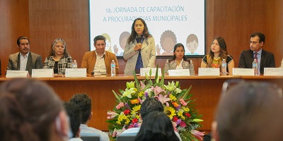 Oaxaca de Juárez, Oax., 7 de febrero de 2023.- Irma Bolaños Quijano, Presidenta Honoraria del Sistema Estatal para el Desarrollo Integral de la Familia (DIF) de Oaxaca, encabezó la inauguración de la primera jornada de capacitación a procuradurías municipales de la entidad, con el propósito de dotarles de mayores herramientas para fortalecer las acciones que se realizan en la atención de casos de niñas, niños y adolescentes que son víctimas de vulneración a sus derechos o que se encuentran en conflicto con la ley penal.