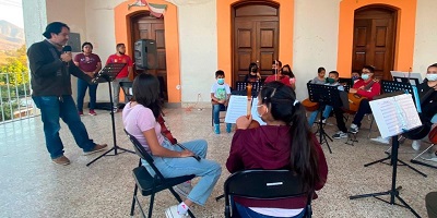 El círculo de lectura se realizó en el corredor del Palacio Municipal de San Agustín Etla, el cual fue acompañado de intervenciones musicales de canciones infantiles interpretadas por la Orquesta.