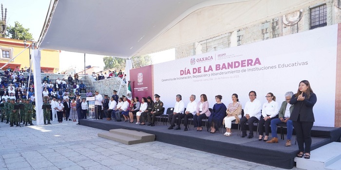 El titular de la Gubernatura del Estado dijo que, en el momento histórico actual, la Bandera Nacional es la insignia que encarna los principios y valores que buscan revertir los efectos de un pasado autoritario y las consecuencias de un modelo económico que solo profundizó la pobreza y la marginación de Oaxaca.