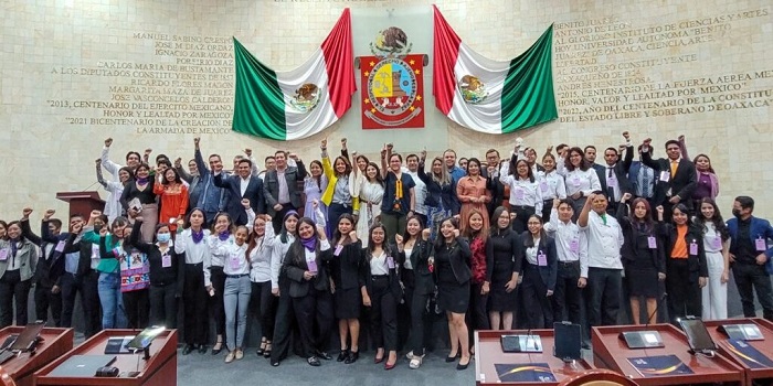 San Raymundo Jalpan, Oax. 09 de marzo de 2023.- Jóvenes estudiantes de las universidades La Salle, Regional del Sureste, Benemérita Universidad de Oaxaca, José Vasconcelos, Tecnológica de los Valles Centrales, Sierra Sur de Oaxaca y Anáhuac, formaron parte del parlamento juvenil “La agenda de las mujeres desde la visión de las juventudes”, por invitación de la diputada Mariana Benítez Tiburcio, presidenta de la Comisión Permanente de Mujeres e Igualdad de Género.