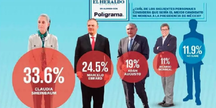 REDACCIÓN EL HERALDO DIGITAL. La jefa de Gobierno de la Ciudad de México, Claudia Sheinbaum Pardo, mantiene ventaja como la corcholata favorita para 2024, según la última encuesta de El Heraldo de México/Poligrama.
