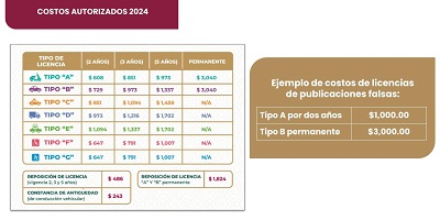 La dependencia expide seis diferentes tipos de licencias cuyo costo oscila entre los 608 pesos hasta los 3 mil 40 pesos, además la vigencia puede ser desde los dos años o de manera permanente.