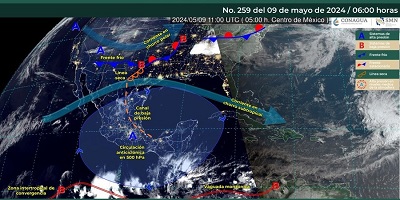 En tanto, un canal de baja presión originará cielo parcialmente nublado con intervalos de chubascos aislados por la tarde-noche en algunas regiones del estado.