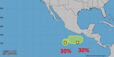 La Coordinación Estatal de Protección Civil y Gestión de Riesgos (CEPCyGR) monitorea las dos bajas presiones establecidas en el Pacífico Sur que se mantienen desorganizadas y con centros poco definidos, ambas con un 30 por ciento de probabilidad para desarrollo ciclónico a siete días.