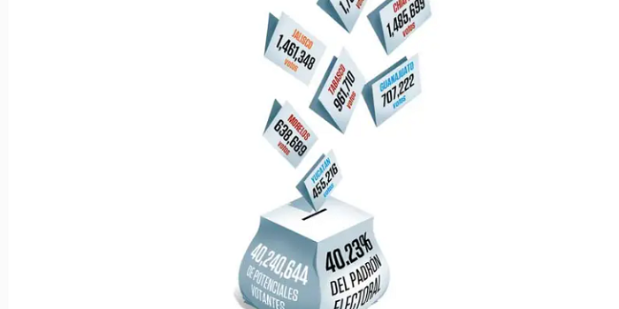 Con 40 millones 240 mil 644 de potenciales votantes, Chiapas, Guanajuato, Jalisco, Morelos, Puebla, Tabasco, Veracruz, Yucatán y la Ciudad de México, las nueve entidades en disputa, concentran 40.23% del padrón electoral.