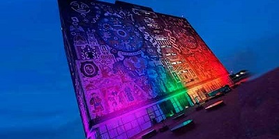 Hoy, 21 de junio, a partir de las 19:30 horas se iluminó el edificio de la Biblioteca Central de la Ciudad Universitaria con los colores de la bandera LGBTIQ+.