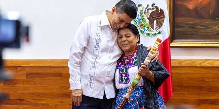 En este marco felicitó a Juana Hernández López, originaria de Santiago Juxtlahuaca, en la región Mixteca, quien resultó electa como Diosa Centéotl y será la embajadora, no solo de la Guelaguetza 2024, si no en diversos eventos y actividades culturales.