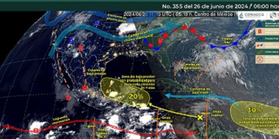 De acuerdo con el pronóstico del tiempo emitido por la Comisión Nacional del Agua (Conagua) lo anterior, debido a canales de baja presión en el interior de la República Mexicana y la entrada de humedad de ambos océanos.