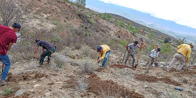 En esta comunidad que resultó afectada por un incendio forestal en los pasados meses de febrero y marzo, personal de la dependencia brinda acompañamiento y apoyo técnico para la apertura de zanjas bordo y cepas en la zona destinada a la reforestación.