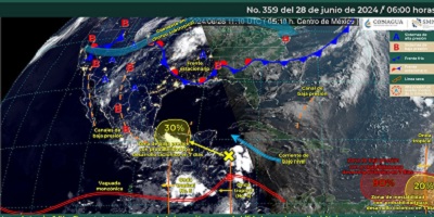 Por otro lado, la dependencia estatal mantiene la vigilancia de dos zonas de baja presión con probabilidad para desarrollo ciclónico al oriente de la Península de Yucatán.