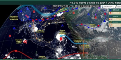 Oaxaca de Juárez, Oax. 5 de julio de 2024.- La Coordinación Estatal de Protección Civil y Gestión de Riesgos (CEPCyGR) informa que el huracán Beryl categoría 2 cruzará la península de Yucatán durante este día, por lo que durante el fin de semana algunas de las bandas posteriores incrementarán las lluvias de forma indirecta en el Norte y Oriente de Oaxaca.
