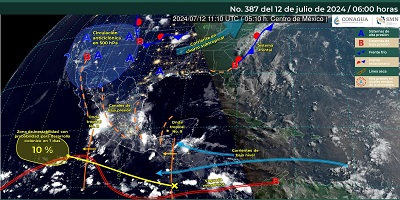 Por otro lado, el Centro Nacional de Huracanes (NHC) mantiene en vigilancia una baja presión con probabilidad de 20 por ciento de desarrollo ciclónico a 7 días, ubicada en Centroamérica con dirección al Oeste.