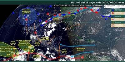 De acuerdo con el pronóstico del tiempo emitido por la Comisión Nacional del Agua (Conagua) esta onda tropical se desplaza en el estado interactuando con un canal de baja presión, lo cual permite tormentas eléctricas, chubascos y rachas de viento de corta duración.