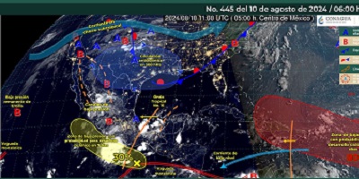 De acuerdo con el pronóstico del tiempo emitido por la Comisión Nacional del Agua (Conagua), este fenómeno natural se desplazará sobre el centro, sur y occidente de México. En su recorrido hacia el oeste se acoplará con la humedad y la circulación de una baja presión localizada sobre la costa de Oaxaca y Guerrero, lo que causará alta probabilidad de tormentas locales de corta duración y rápido desplazamiento en el estado.