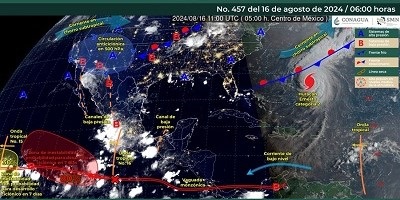 Oaxaca de Juárez, Oax. 16 de agosto de 2024.- La Coordinación Estatal de Protección Civil y Gestión de Riesgos (CEPCyGR) informa que se mantendrán las lluvias con áreas de tormentas más frecuentes e intensas en zonas montañosas debido a la orografía local.