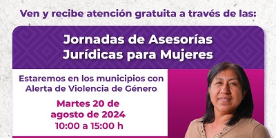Oaxaca de Juárez, Oax. 19 de agosto de 2024.- La Defensoría Pública del Estado de Oaxaca realizará este 20 de agosto las Jornadas de Asesorías Jurídicas para las Oaxaqueñas, a fin de brindar orientación legal gratuita en materia familiar, civil, justicia para adolescentes, penal, agraria, mercantil, administrativa, indígena y constitucional.