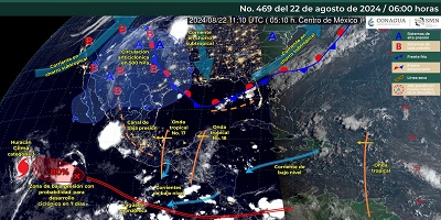 De acuerdo con el pronóstico del tiempo emitido por la Comisión Nacional del Agua (Conagua) este evento entrará a la Península de Yucatán, en combinación con el flujo de humedad del Océano Pacífico, aunado a que la onda tropical número 17 se desplazará sobre el centro y sur de México, lo que provocará estas precipitaciones.