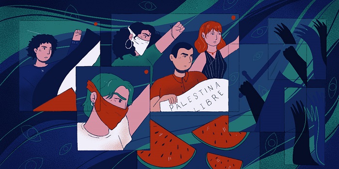 31 agosto, 2024|| Texto: Aitana E. Rodríguez/ @Aitane.rdz / Zona Docs |Ilustración: Ivanna Orozco / @itzsquiggles |JALISCO. – El 7 de octubre de 2023, después del ataque de Hamás en el sur de Israel, en las que se asesinó alrededor de mil 200 personas y se tomó aproximadamente a 250 rehenes israelí, inició el sitiamiento y bombardeo indiscriminado a civiles palestinos de la franja de Gaza, esto a manos del ejército isrealí. A la par, se levantaron alrededor de todo el mundo muestras de solidaridad con el pueblo de Palestina para exigir el cese inmediato al fuego y sanciones al Estado de Israel por cometer crímenes de lesa humanidad.
