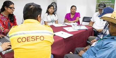 De esta manera, la Coesfo en coordinación con la Conafor trabajan en este esquema que comprendió el trabajo conjunto entre comunidades dueñas y poseedoras de los recursos forestales, universidades e instituciones gubernamentales que forman parte del Comité Estatal de Prevención y Combate de Incendios Forestales del Estado de Oaxaca (CEPCIFEO).