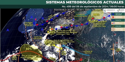 Oaxaca de Juárez, Oax. 6 de septiembre de 2024.- La Coordinación Estatal de Protección Civil y Gestión de Riesgos (CEPCyGR) informa que este viernes se mantendrá la alta probabilidad de lluvias con periodos de tormentas locales fuertes, asociadas con actividad eléctrica y rachas de viento para la tarde en gran parte de la entidad.