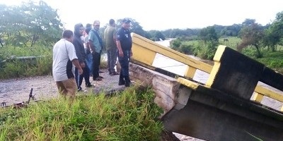 Derivado de las condiciones de la vía de comunicación, se reportó que un vehículo marca Ford, tipo caja, color rojo, se salió del camino a una profundidad aproximada de 30 metros en dicho puente. Este vehículo se encontró abandonado sin personas a bordo.