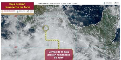 Oaxaca de Juárez, Oax. 24 de septiembre de 2024.- El Consejo Estatal de Protección Civil informa que los remanentes de “John” se encuentran en tierra sobre el estado de Guerrero y Oaxaca, manteniendo en alerta a las regiones Istmo de Tehuantepec, Costa, Sierra Sur, Mixteca y Valles Centrales.