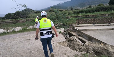 Personal de la Dirección de Respuesta Inmediata de la Coordinación Estatal de Protección Civil y Gestión de Riesgos (CEPCyGR) informó que la mañana de este lunes se llevó a cabo la evaluación de daños del puente que conecta a la calle Revolución con la población de San Pablo Villa de Mitla, el cual colapsó por las constantes lluvias que se han registrado en días anteriores.