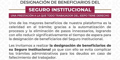 Oaxaca de Juárez, Oax. 9 de octubre de 2024.- El Instituto Estatal de Educación Pública de Oaxaca (IEEPO) implementó el Sistema Digital para la Designación del Consentimiento del Seguro de Vida Institucional para las personas trabajadoras de la institución.