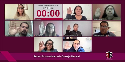 La mañana de este jueves 17 de noviembre, en Sesión Extraordinaria Urgente, el Consejo General del Instituto Estatal Electoral y de Participación Ciudadana de Oaxaca, aprobó por unanimidad el Proyecto de Acuerdo IEEPCO-CG-132/2024, en cumplimiento a lo ordenado en la sentencia dictada por el Tribunal Electoral del Estado de Oaxaca, dentro del Juicio para la Protección de los Derechos Político Electorales del Ciudadano, recaído en el expediente JDC/298/2024.