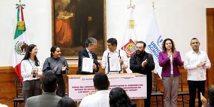 La firma de este acuerdo, a cargo del Gobernador Salomón Jara Cruz y el representante de la Oficina del ACNUR en México, Giovanni Lepri, permitirá estrechar lazos de cooperación para la salvaguarda de los derechos humanos de quienes se encuentren en estas circunstancias y fortalecer las tareas de apoyo técnico que garantice la asistencia humanitaria y jurídica a este grupo de la población.