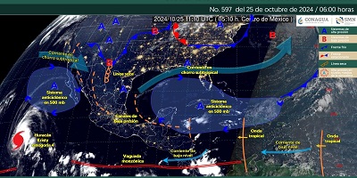 De acuerdo con el pronóstico del tiempo emitido por la Comisión Nacional del Agua (Conagua) un canal de baja presión –evento que genera lluvias- y el ingreso de humedad del Golfo de México, ocasionarán estas condiciones atmosféricas.