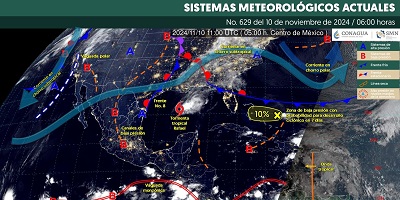De acuerdo con el pronóstico del tiempo emitido por la Comisión Nacional del Agua (Conagua), este frente frío se mantiene como estacionario sobre el noroeste del Golfo de México, interactuando con la amplia circulación del ciclón tropical Rafael que continúa debilitándose. Asimismo, una ligera entrada de humedad del pacífico ocasionará lluvias escasas en la Sierra Sur y Mixteca.