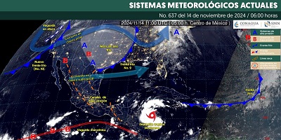 Oaxaca de Juárez, Oax. 14 de noviembre de 2024.- La Coordinación Estatal de Protección Civil y Gestión de Riesgos (CEPCyGR) informa que el frente frío número 9 ocasionará ligero descenso térmico que se sentirá con mayor intensidad en las regiones de la Mixteca, Sierra de Juárez, Sierra de Flores Magón y Sierra Sur a partir de la tarde-noche de este jueves.