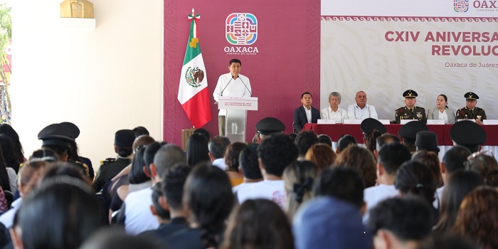En un acto cívico realizado en el Jardín Madero de la capital oaxaqueña, el Mandatario estatal señaló que los esfuerzos de las y los caudillos del movimiento social de 1910 se ven reflejados en las reformas constitucionales del país, que permiten a la ciudadanía vivir libremente y decidir el rumbo de la nación.