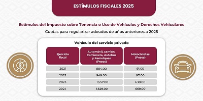 Cabe destacar que también podrán acceder al estímulo de 100 por ciento, las y los propietarios y/o tenedores de vehículos registrados en Oaxaca que estén al corriente en el pago del impuesto mencionado y derechos vehiculares en ejercicios anteriores, y efectúen el pago del Impuesto sobre Tenencia o Uso de Vehículos, derechos de control vehicular y del semestre de la verificación de emisión a la atmosfera.