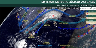 De acuerdo con el pronóstico del tiempo emitido por la Comisión Nacional del Agua (Conagua), este frente frío recorrerá el Golfo de México y la masa de aire frío que lo impulsa ocasionará nuevamente un descenso de temperatura con ambiente muy frío en zonas montañosas y mesetas altas a partir del amanecer del sábado.