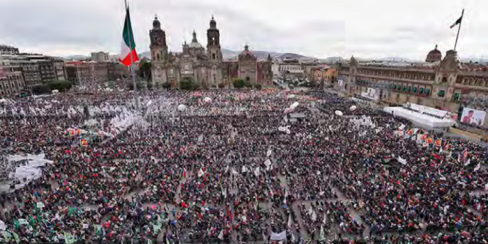 Las palabras de la mandataria desataron el grito de México, México, México entre los miles de asistentes que desbordaron ayer el Zócalo capitalino durante el informe que ofreció con motivo de sus primeros 100 días de gobierno. La jefa del Ejecutivo también se sumó por un instante a los coros.