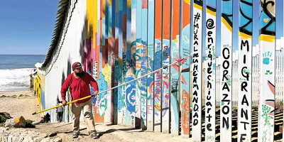 Justo donde comienza la patria, Enrique Chiu, inició el Mural de la Hermandad, luego de obtener el permiso de la administración de Barack Obama y la Oficina de Aduanas y Protección Fronteriza de Estados Unidos.