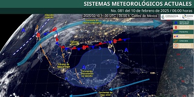 Oaxaca de Juárez, Oax. 10 de febrero de 2025.- La Coordinación Estatal de Protección Civil y Gestión de Riesgos (CEPCyGR) informa que, durante este lunes, se espera que continúe la amplia circulación anticiclónica en niveles medios de la troposfera con influencia en gran parte de México.