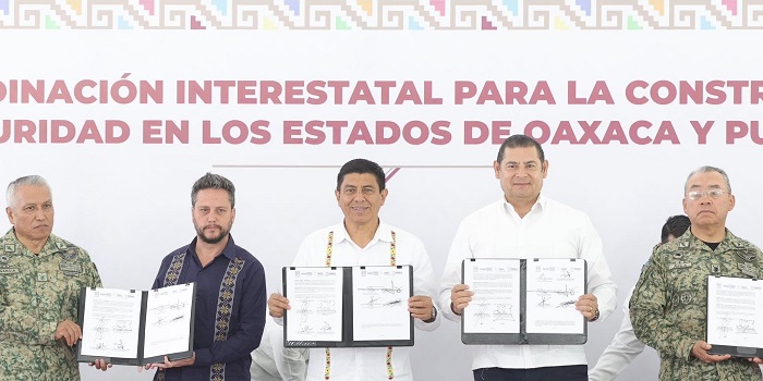 – Los Gobernadores Salomón Jara y Alejandro Armenta firmaron el Convenio Marco de Coordinación y Colaboración Intergubernamental de Acciones en Materia de Seguridad. – Convinieron tareas conjuntas con un enfoque en la prevención del delito y reacción inmediata.