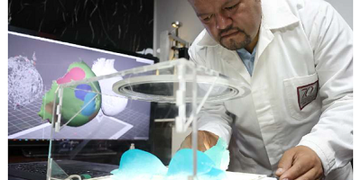 A partir de imágenes extraídas de tomografías computarizadas, el investigador del Instituto Politécnico Nacional (IPN) Juan Alfonso Beltrán Fernández genera modelos digitales con programas informáticos, los cuales imprime en 3D con resina para materializar las estructuras internas de las mamas exactas a las reales y brindar a los especialistas una herramienta complementaria para el diagnóstico de cáncer de mama.
