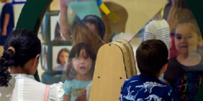 En esa sección, que busca la reflexión, hay obra artística de la fotógrafa brasileña Angélica Dass, Humanae, la cual mediante una variedad de retratos visibiliza la heterogeneidad de las personas. Con algunos espejos colocados en las imágenes, las niñeces pueden verse reflejadas dentro de esa diversidad y así formar parte de este trabajo.