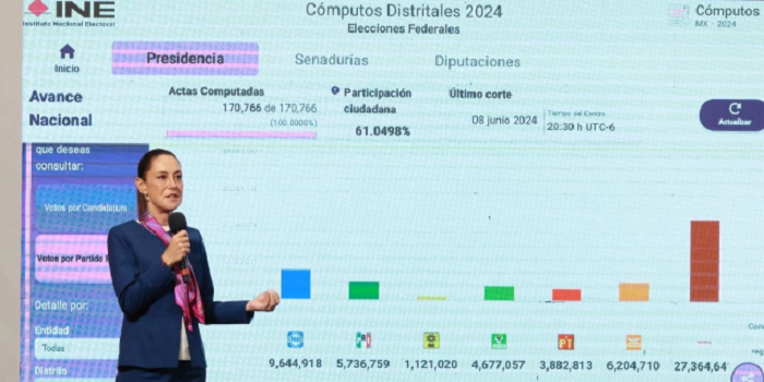 La mandataria delineó que en los resultados electorales del año pasado el PAN obtuvo 9.6 millones de votos; el PRI, 5.7, y Movimiento Ciudadano, 6.2 millones.