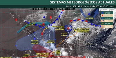 Oaxaca de Juárez, Oax. 4 de junio de 2025.- La Coordinación Estatal de Protección Civil y Gestión de Riesgos (CEPCyGR) informa que, este miércoles, se mantendrá la inestabilidad y el temporal de lluvias, las cuales pueden ser moderadas a localmente fuertes con probables tormentas puntuales (chubascos, actividad eléctrica y rachas de viento) en horas de la tarde y noche.