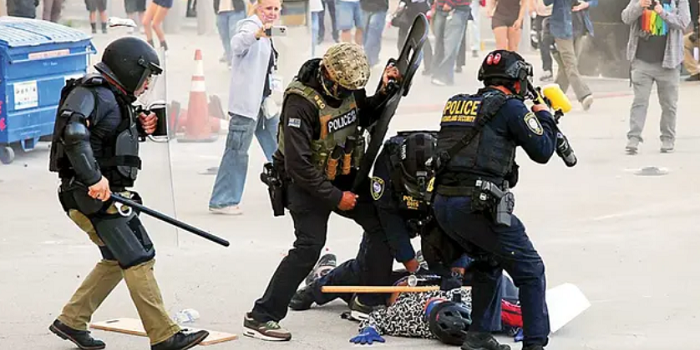 Tras lo cual, agentes federales con equipo táctico y rifles de estilo militar lanzaron granadas aturdidoras para dispersar a los manifestantes.