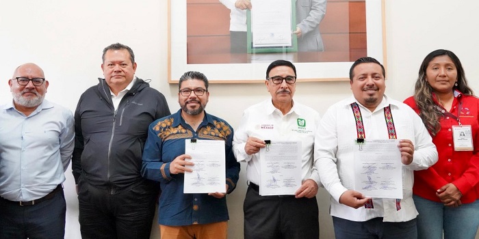 Oaxaca de Juárez, Oax. 11 de junio de 2025.- Los titulares de la Consejería Jurídica y Asistencia Legal del Gobierno de Oaxaca, Geovany Vásquez Sagrero y de la Secretaría de Administración, Noel Hernández Rito; firmaron, en representación del Estado, el Acta Administrativa de entrega-recepción del polígono ubicado en la agencia municipal de Guadalupe Hidalgo, San Lorenzo Cacaotepec, donde se construirá Ciudad Salud.