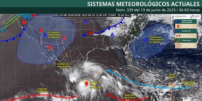 Se prevé que, en el transcurso de la mañana, Erick empiece a debilitarse sobre el occidente de Oaxaca y oriente de Guerrero; sin embargo, continuará dejando lluvias puntuales torrenciales en ambas entidades.