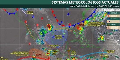 De acuerdo con el pronóstico del tiempo emitido por la Comisión Nacional del Agua (Conagua), el disturbio tropical en el Océano Pacífico tiene alta probabilidad de desarrollo ciclónico en las próximas horas, que podría ser una depresión o tormenta tropical, sin embargo, no afectará la tierra.