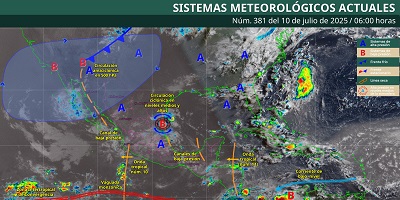 Oaxaca de Juárez, Oax. 10 de julio de 2025.- La Coordinación Estatal de Protección Civil y Gestión de Riesgos (CEPCyGR) informa que, para este jueves continuarán las lluvias especialmente en horas de la tarde-noche con presencia de tormentas puntuales fuertes asociadas con descargas eléctricas, rachas de viento moderadas y probables áreas de granizo.